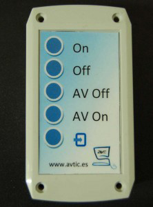AVTic, empresa dedicada a la tecnología para educación con un gran abanico de equipamiento y servicios, ha patentado un mando universal para proyectores de centros educativos que se fija a la pared del aula, desde donde se ejecutan las principales funciones del proyector. Se llama MPU0o1 (Mando Programable Universal) e incorpora 5 boutons: on/off, para encender y apagar el proyector; AV on/off para poner un fondo blanco o negro sobre la pantalla; y el destinado a seleccionar la fuente de video utilizada. Esta caja es compatible con la mayoría de los videoproyectores del mercado gracias a que su chip se puede programar para cada uno de ellos, y es una solución muy ecológica, ya que funciona conectada a la corriente y no necesita pilas.