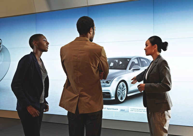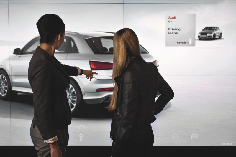 Audi ha inaugurado en Londres su primer concesionario digital, al que han bautizado como Audi City, que ofrece a los clientes una experiencia totalmente digital, en la que cobra protagonismo una gran pantalla-mural que permite a los usuarios realizar todo tipo de combinaciones para comprobar, a escala 1:1, cómo quedaría su Audi ideal: couleurs, llantas, tapizados… Todo mediante control por gestos.