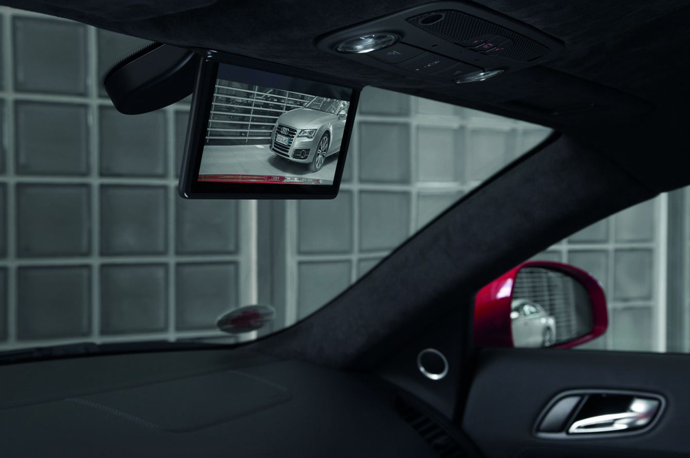 Audi présentera la version électrique du modèle sportif R8 à la fin de l'année, la R8 e-tron, un nouveau système de rétroviseur intérieur numérique intégrant un affichage 7,7 pouces de Samsung qui fonctionne avec un appareil photo, remplacement du miroir de cabine habituel.