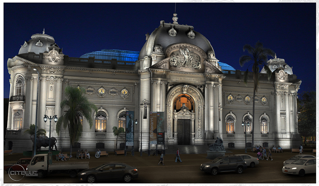La empresa Citeluz le ha presentado al Ayuntamiento de Santiago de Chile un plan para iluminar las cuatro caras del Museo de Bellas Artes de la capital chilena con el objetivo de resaltar su valor arquitectónico. Pour réaliser, se instalarán 300 Projecteurs LED, dont 180 apuntarán a la fachada. En plus, la cúpula de cristal será azul durante las noches.