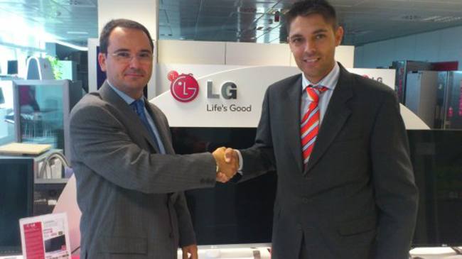 Fermín Fontecha, Directeur Général d'Alzinia, et Ivan González, Responsable des Ventes B2B de LG Electronics, après avoir signé l'accord.
