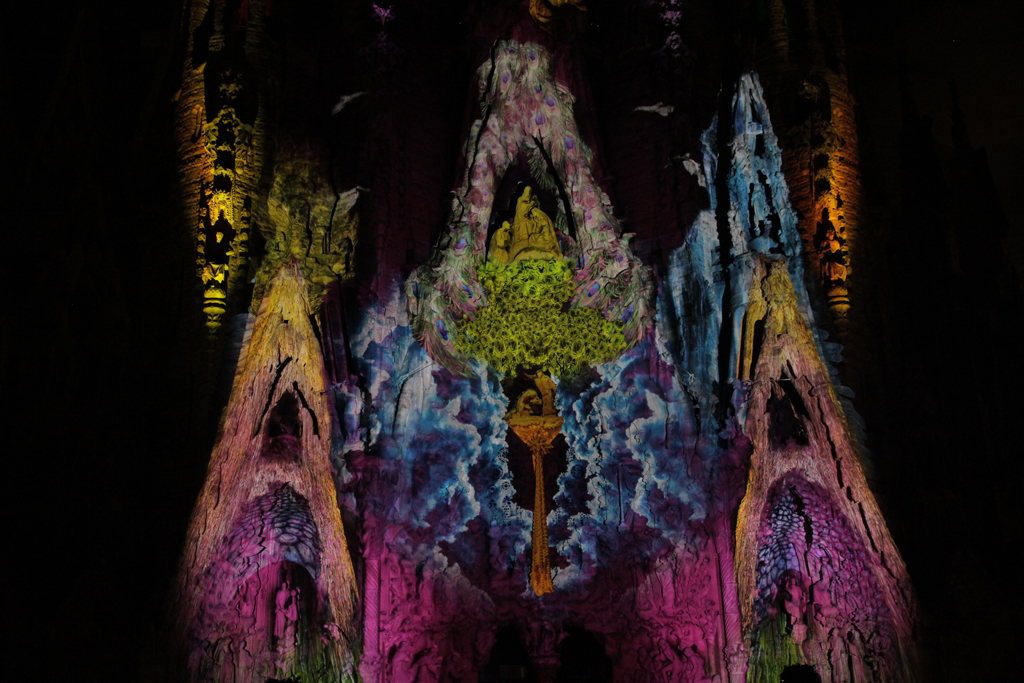 El montaje ha sido realizado por la productora canadiense de espectáculos multimedia Moment Factory, que ha escogido el templo de Gaudí como el icono principal de la capital catalana. Se trata de un espectáculo con banda sonora y juegos de luces en siete actos que se presenta como una “oda a la creación del mundo, del hombre y de la vida” y que rinde homenaje a la obra del genial arquitecto catalán.