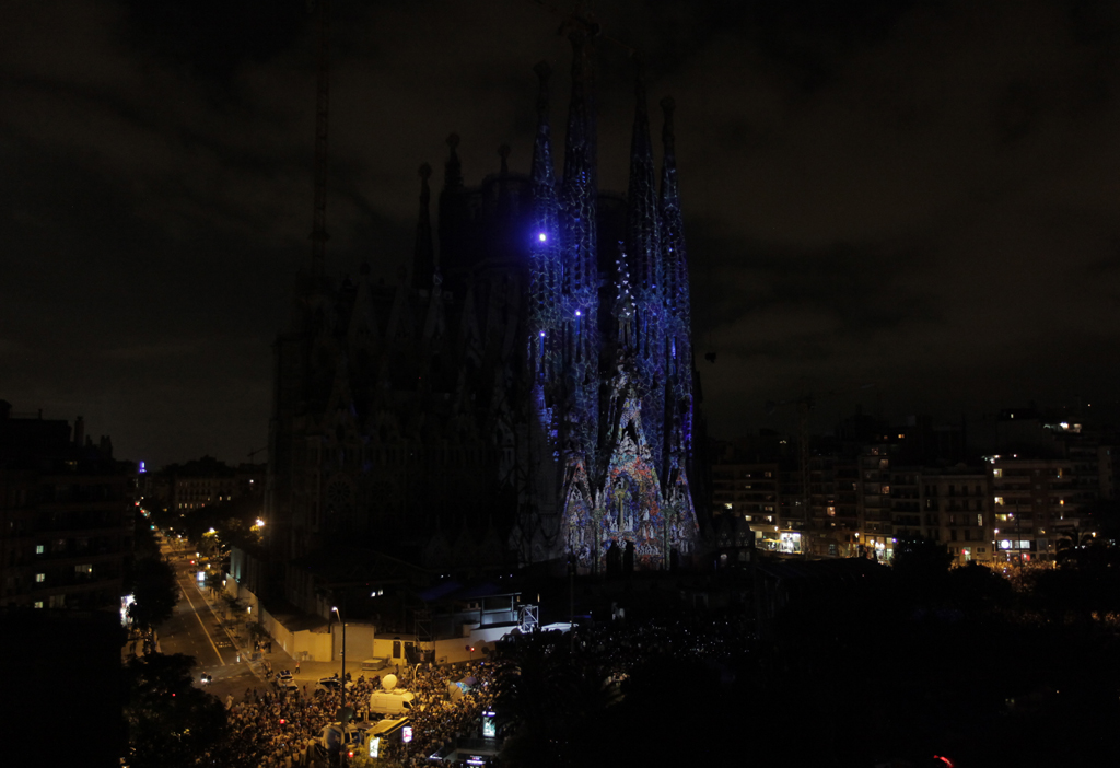 Con motivo de la fiesta mayor de Barcelona, La Mercè, la fachada de la Sagrada Familia ha acogido un impresionante espectáculo multimedia inspirado en la figura de Antoni Gaudí que Moment Factory, una empresa de Montreal, ciudad invitada a los festejos, ha ideado para uno de los puntos culminantes de la fiesta.