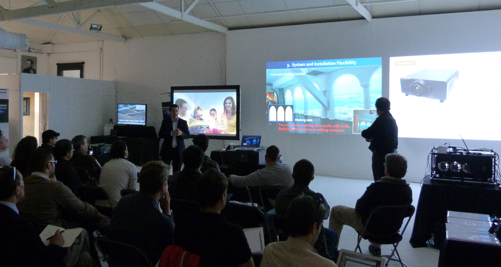 El primer Visual Experience Roadshow de Panasonic ha servido a la firma japonesa para presentar sus novedades de producto 2012 en pantallas, projecteurs, tableaux blancs interactifs, broadcast y videoconferencia, entre los que se encontraba el DZ21K, le projecteur 20.000 lumens les plus compacts et les plus légers du marché, la pantalla de plasma TH-65PB1 y la pizarra interactiva UB-T880. Tras partir de Estocolmo el 11 Avril, la gira europea de Panasonic pasó por París, Barcelone, Madrid –añadiendo a su paso por España paradas en Bilbao, Sevilla y Alicante gracias a la colaboración de Écouteur-, Milan, Roma, Copenhague y Aarhus, para terminar en Oslo el 19 Juin.
