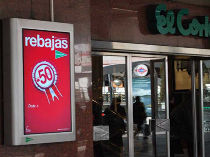 El Corte Inglés ha implantado soluciones de cartelería digital en sus centros comerciales, después de la realización de estudios de valoración, con el objeto de aprovechar las ventajas que ofrecen este tipo de dispositivos y cubrir los aspectos antes mencionados además de crear circuitos publicitarios para ofrecer a las marcas de los productos en venta, que hasta ahora habían realizados con cartelería convencional estática.
