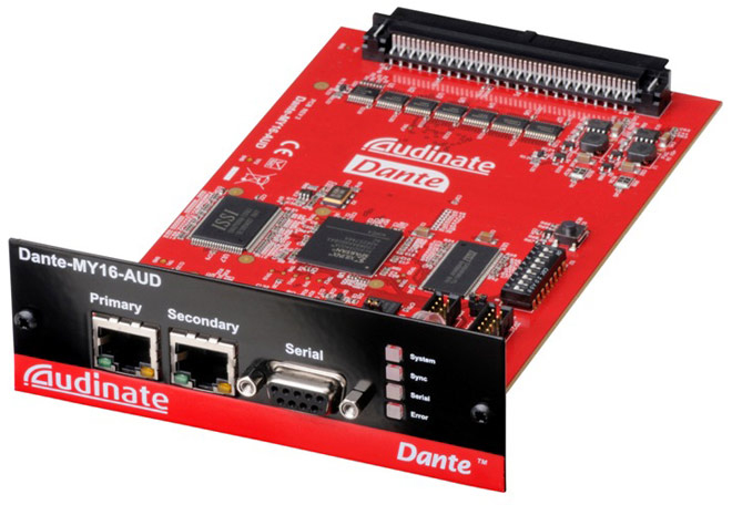 La carte Audinate Dante-MY16-AUD, mis à jour pour la télécommande de l'amplificateur principal