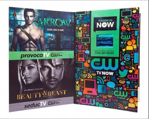 Le réseau de télévision CW aux États-Unis a lancé une campagne graphique pour une programmation d'automne différente des habituelles.. Ils ont été insérés dans le magazine Divertissement hebdomadaire une publicité intégrant une puce de données 3G et un écran permettant de suivre les mises à jour sur le compte Twitter officiel de la chaîne.