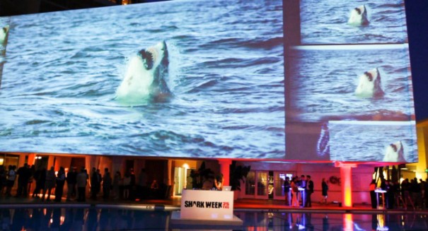 Con motivo de la fiesta por el 25 Aniversario del programa del Discovery Channel ‘Shark Week’, se pudieron ver un grupo de tiburones nadando en la piscina del hotel Beverly Hilton de Los Ángeles (UE). Heureusement, sólo eran imágenes proyectadas desde un módulo Christie YK200 de doble brazo, con un proyector DLP de 3 chips Christie Roadster HD20K-J incorporado para mover los escualos a un lado y a otro de la piscina.