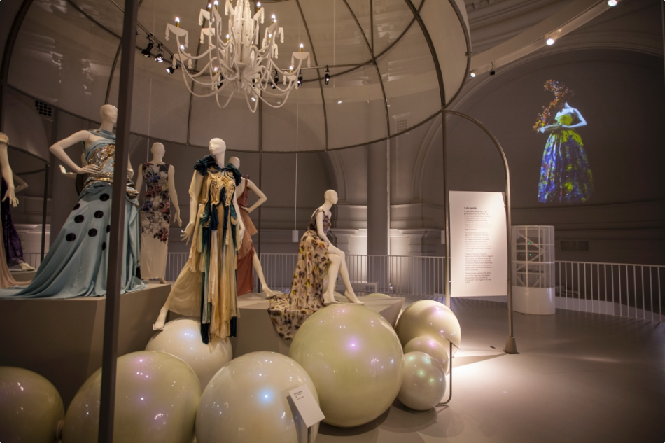 Une exposition spectaculaire de plus de 60 costumes des modèles des six dernières décennies du design de mode, 'Tenues de soirée: Glamour británico desde 1950’, es la primera exposición que utiliza las galerías de moda recién renovadas en el museo Victoria y Albert de Londres. Con una serie de vestidos de noche de pasarela y alfombra roja que fluyen y que son tan fascinantes como hermosos de ver, la exposición ha adquirido una dimensión especial gracias a una instalación AV en la que las soluciones de projectiondesign y Watchout de Dataton han jugado un papel fundamental.
