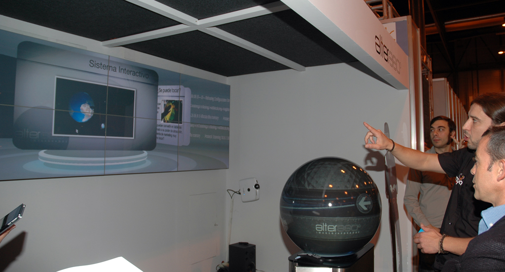 Pour le salon Digital Signage World, Cubensis avec son partenaire Alter3sesenta ont préparé une installation dans laquelle, à travers une sphère tactile interactive, un support différent et innovant ainsi qu'efficace pour projeter du contenu visuel, vous pouvez naviguer dans une présentation créée avec ce logiciel.
