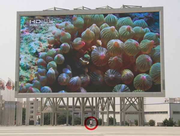 El especialista en soluciones LED británico Messagemaker ha anunciado la instalación en Foshán, una ciudad-prefectura en la provincia Guangdong, al sur de China, de la que se considera la pantalla LED más grande del mundo, con un tamaño de 23,42 m x 41,86 m (980 m2). Cuenta con un pixel pitch de 12mm, une résolution de 1952 x 3488 (que es más de 7 veces más píxeles que una pantalla HD de 1280 × 720), plus que 20 millones de LEDs, legibilidad a una distancia de 10 kilómetros y una distancia de visualización de 20 kilomètres.