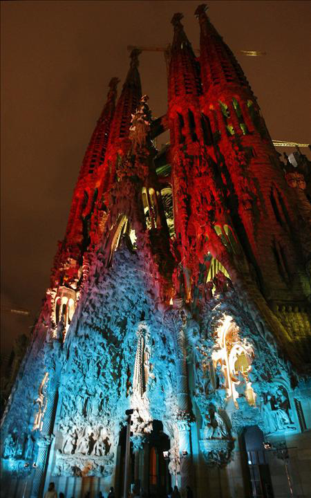 La Sagrada Familia felicita la Navidad iluminando la fachada del nacimiento