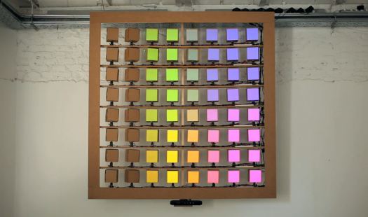 Dans un projet pilote ludique et technologiquement très avancé, Xavier Tribó et la division de projets spéciaux de Glassworks Barcelona parviennent à synchroniser et cartographier 64 boîtes en carton tournantes avec une projection multicolore régie par des mouvements capturés avec Kinect.