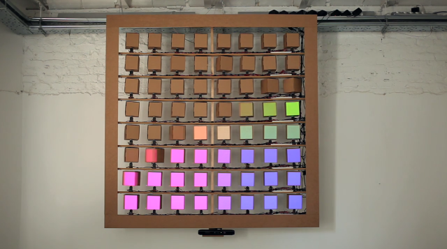 Le prototype a été conçu à l'aide d'un projecteur Panasonic, Le système Kinect de Microsoft, 8 Arduino, OpenFrameworks, 64 servomoteurs et 64 de simples boîtes en carton. Tout cela, combiné avec la technologie la plus sophistiquée (cartographie par projection, rotation des pixels, synchronisation,…), génère un résultat vraiment étonnant. Ver… croire.