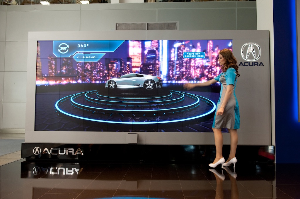 Cuarenta MicroTiles y dos unidades de control externo ECU fueron la base del display interactivo creado por Smart Look, una empresa especializada en sistemas publicitarios DOOH, para presentar el prototipo Acura NSX en el Salón Internacional del Automóvil de Moscú.