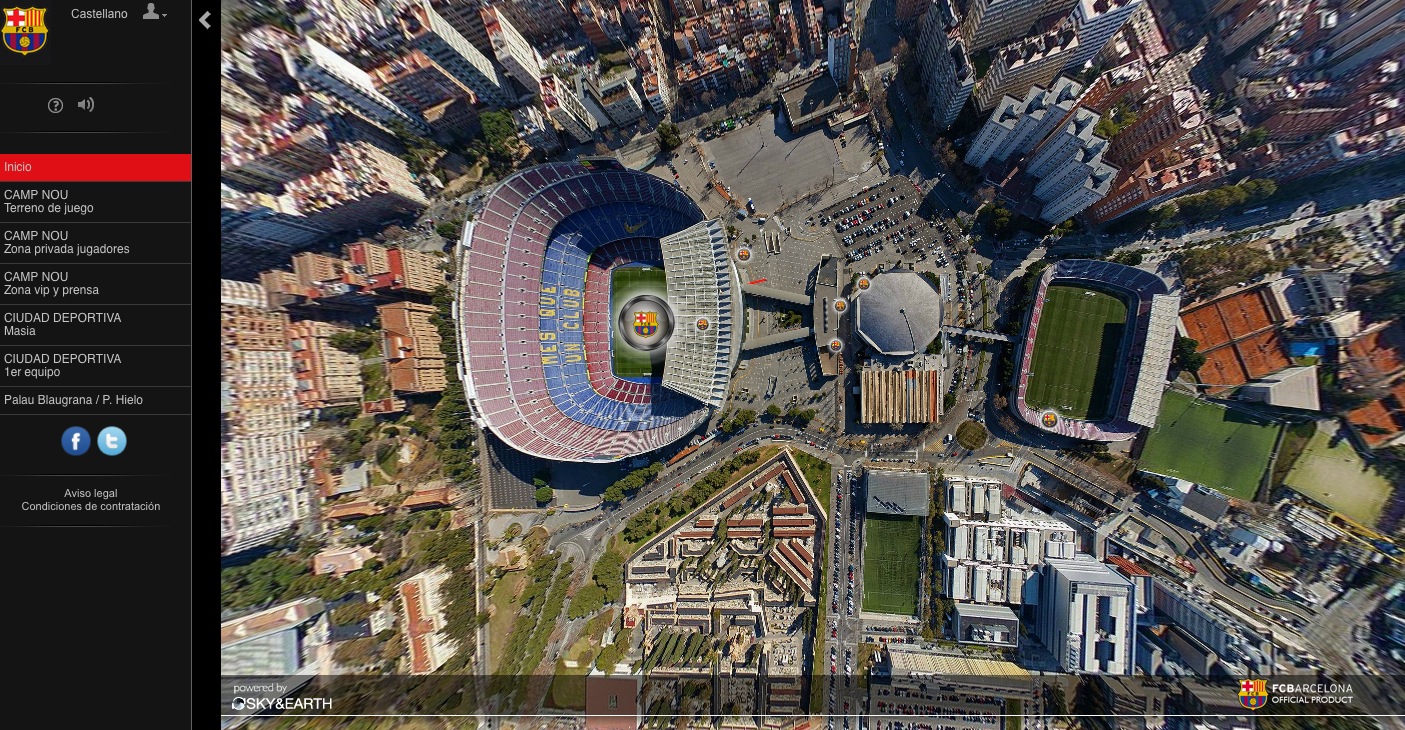 La Compagnie du Ciel&Earth a été chargé de développer la visite virtuelle FCB en utilisant des processus et des éléments technologiques pionniers, en lançant une visite composée de 250 photographies sphériques aériennes et terrestres de haute qualité de toutes les installations Blaugrana.