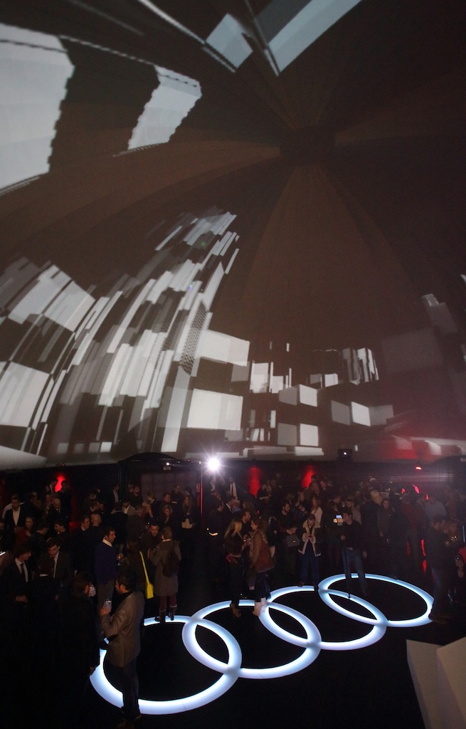 Christie remplit la présentation spectaculaire de la nouvelle Audi A3 de lumière à l'intérieur d'un dôme géodésique