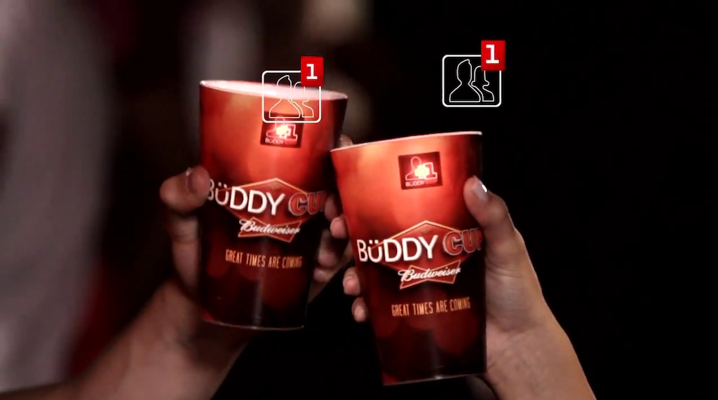 En una experiencia única hasta la fecha llevada a cabo por la agencia brasileña Afrique, Budweiser Brasil está probando nuevo concepto llamado The Buddy Cup (La copa de los colegas), una jarra de cerveza integrada con Facebook .