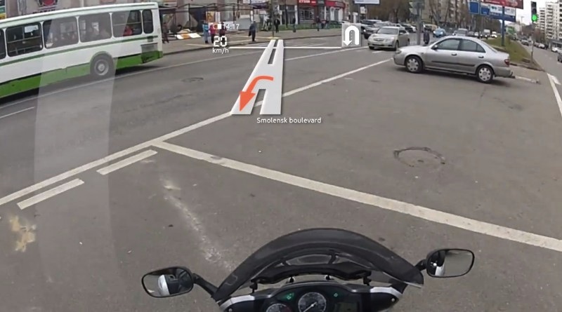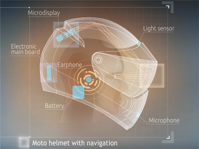 La empresa rusa LiveMap ha desarrollado un prototipo de casco para los ‘moteros’ con tecnología de realidad aumentada, que además de protección muestra en su visera información geo-referenciada, navegación GPS, control por voz, etc..
