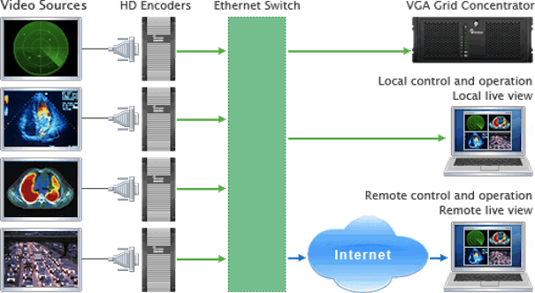 Disponible en el mercado español a través del distribuidor Médias ambiants, VGA Grid puede actuar como un sistema independiente, capturando las fuentes de forma directa, o como una solución en red que permite la captura de fuentes remotas usando codificadores conectados a una red Ethernet/IP.