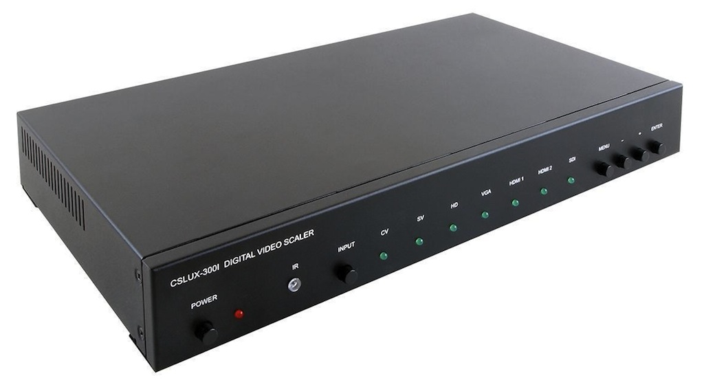 Pour ta part, el escalador digital de vídeo CSLUX-300I admite múltiples formatos de señal de entrada con su audio asociado para realizar presentaciones de alta resolución, incluido vídeo digital de 3G/HD/SDI.