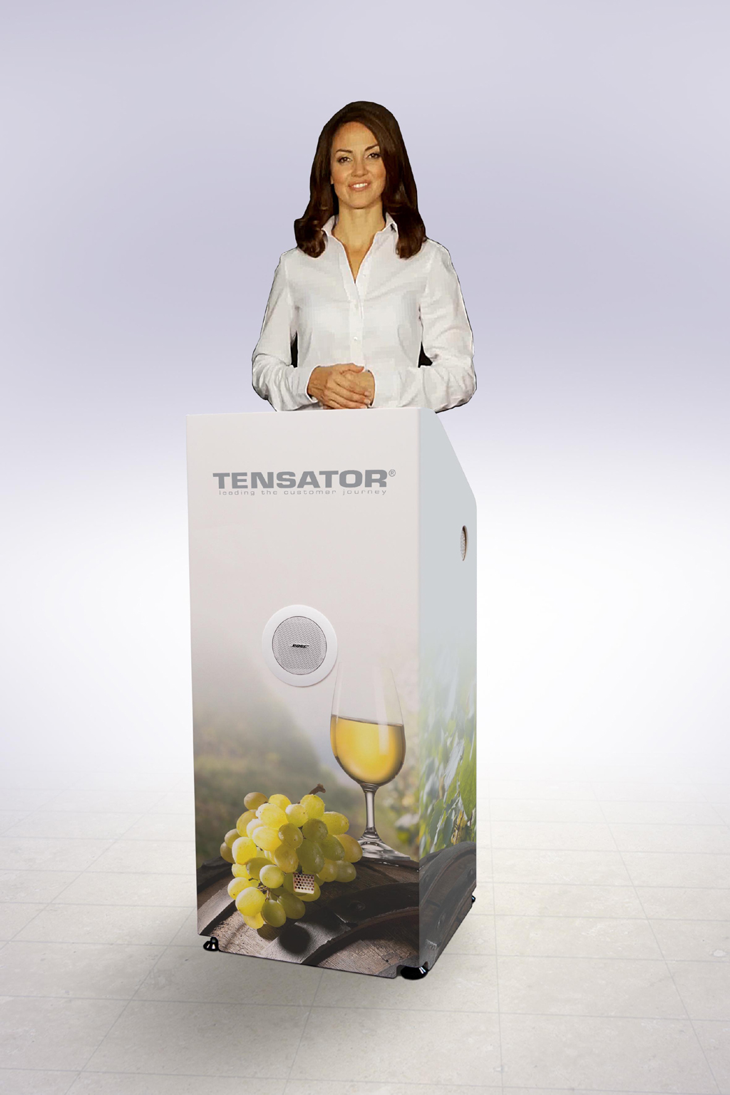 Tensator Asistente Virtual Ultra es una solución que permite crear la ilusión de una persona real y proporcionar una plataforma de publicidad desde donde transmitir todo tipo de informaciones y contenidos. Se trata de un sistema de señalización digital personalizable que se ajusta a cualquier marca, tipo de mensaje y entorno.