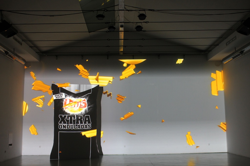 El proyecto audiovisual en 3D realizado por Productions étranges en Madrid para una conocida marca de patatas fritas ha sido creado para proyectarse en sala, sobre una maqueta simulando una gran bolsa de patatas.