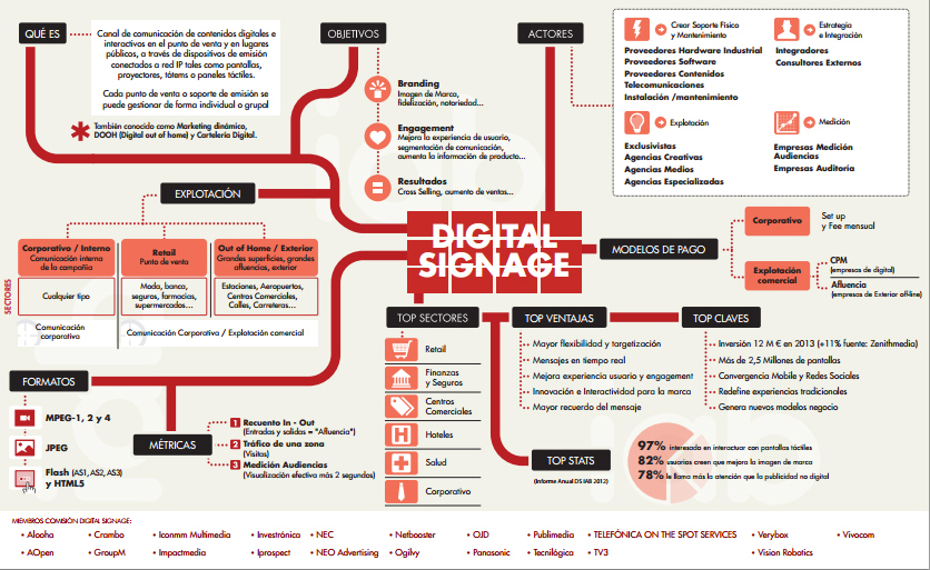 El mercado de señalización digital va ganando posiciones. La inversión publicitaria digital alcanzará los 12 millions d'euros en 2013 y para su aplicación hay instaladas mas de 2,5 millones de pantallas.