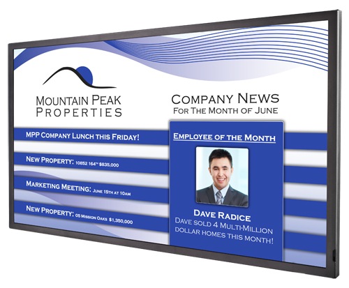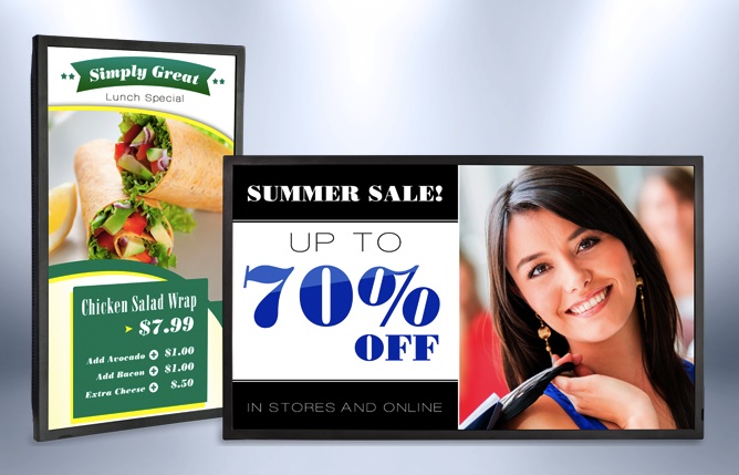 Particulièrement indiqué pour l'affichage numérique dans le commerce de détail, restaurants, espaces de réunion, bureaux, etc., Ces systèmes permettent aux utilisateurs de créer et d'afficher du contenu vidéo, photographies prises avec un téléphone portable, bibliothèques d'images et de musique libres de droits.