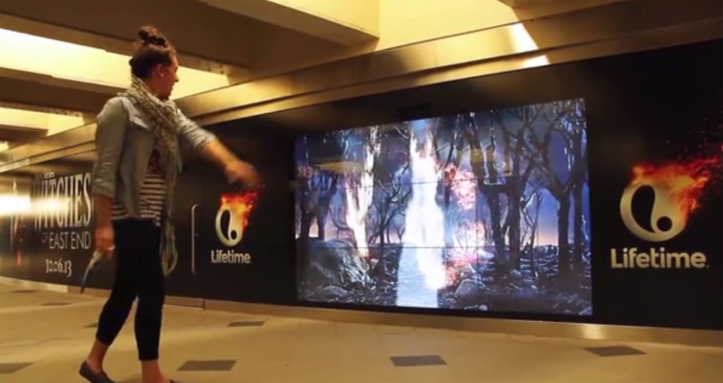 Los pasajeros del metro, en la estación de Columbus Circle en Nueva York, se han visto sorprendidos por un vídeowall interactivo que tiene como objetivo promocionar la nueva serie de la cadena de televisión por cable americana Lifetime, propiedad de A+E Networks, Witches of East End que se estrenará el seis de octubre.