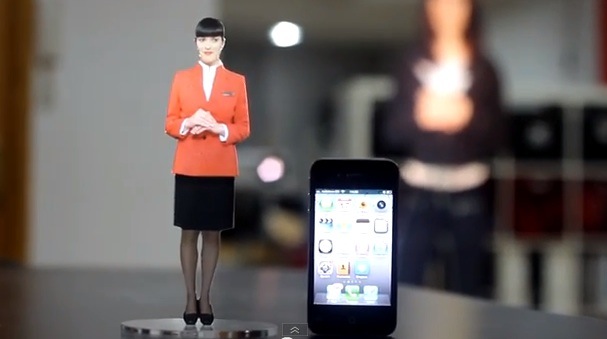 La société espagnole Cubensis travaille actuellement sur le prototype d'une nouvelle version de son hôtesse de l'air virtuelle-holographique de taille mini. (20 cm. grand) pour application sur n'importe quel comptoir de vente au détail, restauration, etc..