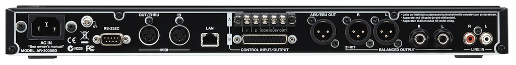 Ce modèle représente la prochaine génération d'enregistreurs/lecteurs numériques., intégrant un programmateur horaire et un contrôle via LAN avec fonctionnalité de serveur Web et permettant le contrôle depuis n'importe quel site distant. L'AR-3000SD vous permet de sélectionner des modèles pour l'application que vous utilisez, en utilisant le contrôle d'entrée RS-232 sur le panneau arrière. Il existe cinq types différents de reproduction, dont; droit, programmé, pistes, ordinateur et MIDI, ainsi que boucler et répéter.