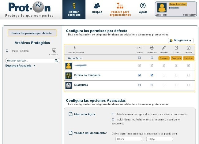 En ce sens, L'application permet également d'envoyer des documents protégés à des destinataires sur lesquels l'application n'est pas installée, utiliser une visionneuse pour accéder au contenu avec une autorisation préalable. En plus de travailler sur n'importe quelle plateforme (Fenêtres, IOS, Androïde, etc.), Cette solution offre à l'utilisateur un contrôle actif sur les copies ou autres actions effectuées sur les fichiers protégés., avec possibilité d'accorder, restreindre ou bloquer leur accès même longtemps après que vous les ayez envoyés, et même définir des dates d'expiration et des filigranes, entre autres.