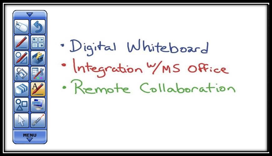 Elo Digital Whiteboard permite la colaboración en la propia pizarra; crear contenidos digitales con los dedos o con un lápiz digital; presentar documentos y trabajar con equipos remotos mediante videoconferencia, entre otras acciones.