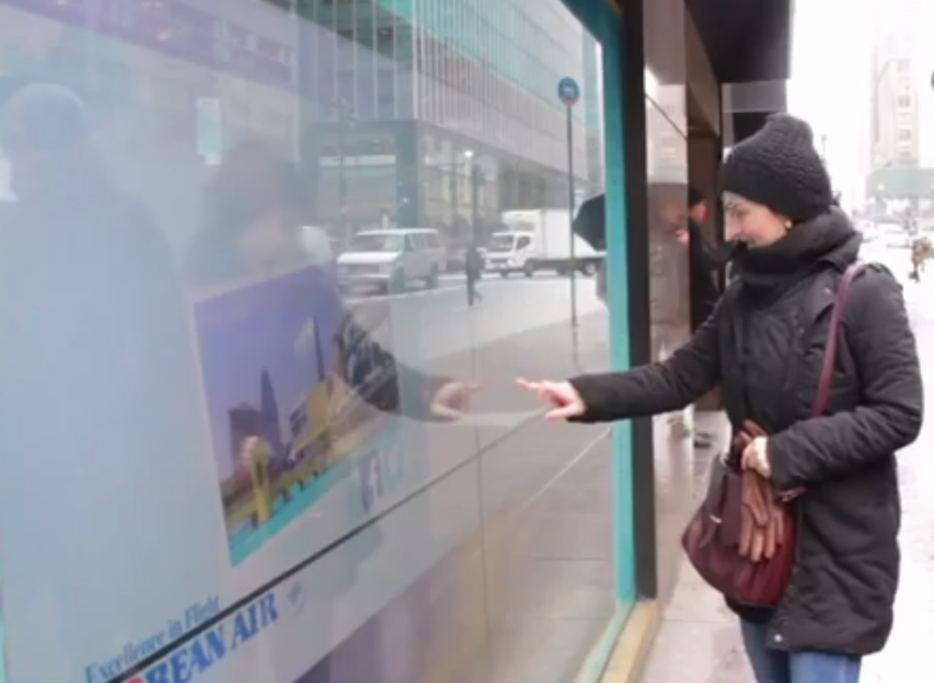 Le mur vidéo de 2×2 a été conçu par Médias Perle e instalado en el 335 de Madison Avenue. Los contenidos que se ofrecen invitan a los potenciales clientes a entrar en la experiencia de Korean Air y elegir un destino al que viajar. L'écran, que se activa mediante la tecnología de gestos, los sumerge en la ciudad seleccionada, les permite tomar una foto que puede ser enviada por correo electrónico y compartida en las redes sociales.
