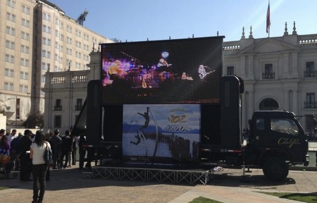 Una gigantesca pantalla LED de 3,5 metros de altura ubicada en la fachada del edificio del Servicio Nacional de Turismo (Sernatur) de Santiago de Chile ha servido de plataforma para presentar la competición deportiva más dura del mundo: Dakar 2014, que recorrerá más de 9.000 Km. por sexto año consecutivo en América del Sur.