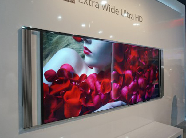 La firma japonesa expuso en su stand de CES 2014 un écran large 105 pulgadas que ofrecía una definición 5K (Ultra HD Extra Wide) alcanzando una resolución de 5.120 x 2.160 puntos con una proporción de 21:9.