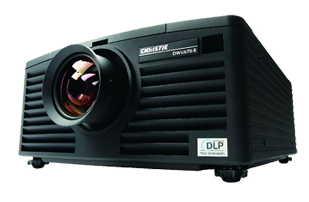 El segundo dispositivo de proyección de la sala es un proyector digital Christie DWU670-E, capaz de proyectar hasta 6.000 lúmenes ANSI con resolución nativa WUXGA (1920 x 1200) y lente de zoom intercambiable 2.0-4.0:1. El Christie DWU670-E es un proyector DLP de 1 chip que forma parte de la Serie E de Christie y proporciona un brillo y calidad de imagen excepcionales en una carcasa compacta. Esta plataforma flexible funciona con modos de lámpara única o dual y tiene capacidad para generar con una sola lámpara niveles lumínicos superiores al que otros proyectores alcanzan con lámpara doble.