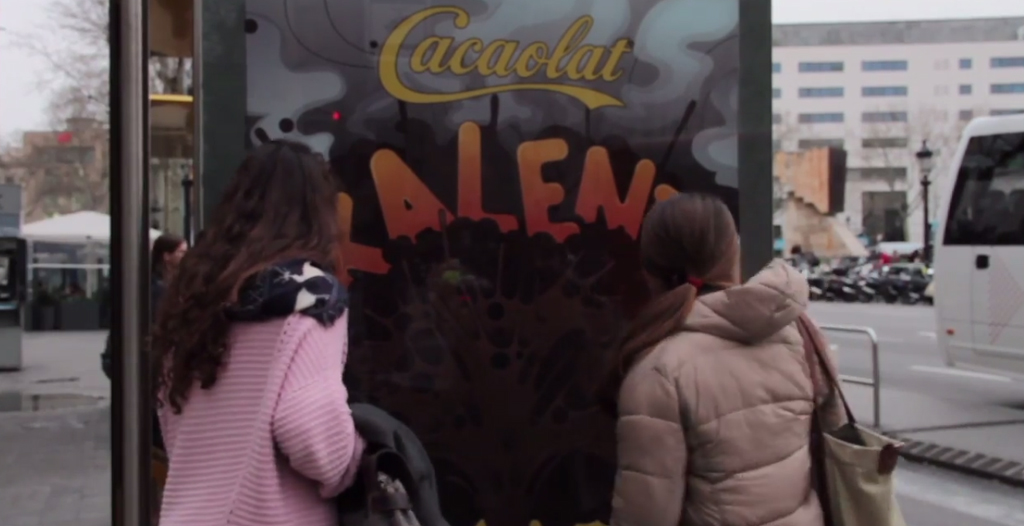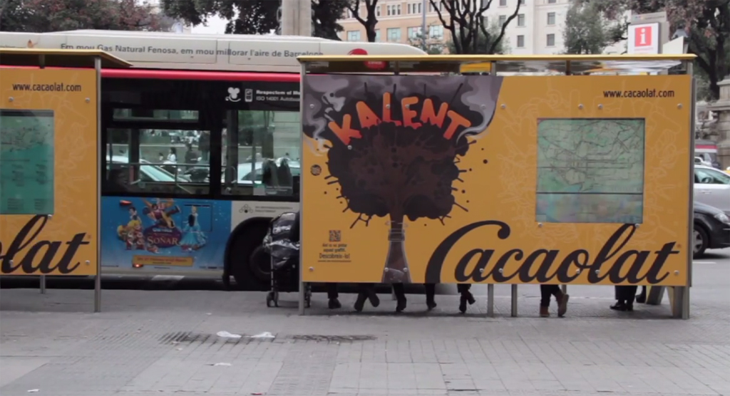 Cuando los transeúntes se acercaban a la marquesina, se sumergían en una experiencia de dispersión de aromas con olor a batido de cacao. Esta es la campaña publicitaria en mobiliario urbano que JCDecaux y Arena Media han desarrollado para Cacaolat en Barcelona.