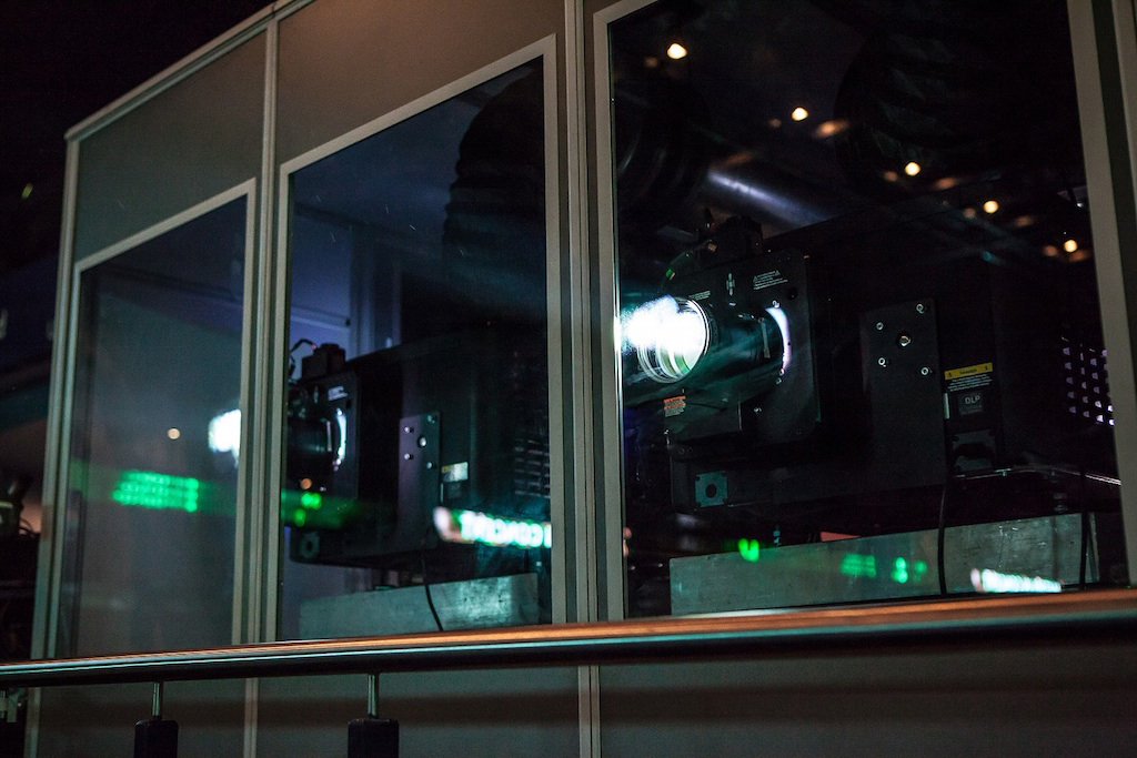 Los proyectores se colocaron a unos 80 metros de la pantalla sobre un pedestal Bütec equipado ex profeso con una cabina insonorizada de Audipack, una medida que garantiza que el sonido de la orquesta no se vea afectado por el ruido del ventilador, por débil que sea.