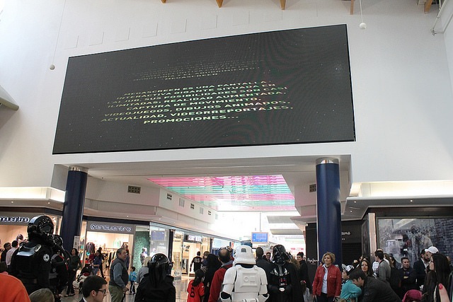 Esta pantalla LED interactiva, del proveedor alicantino Europa LED, avec son 52 m² de tamaño, se ha convertido en el panel visual más grande instalado hasta ahora en un centro comercial de España. Así lo señalaba durante su inauguración Florentino Fernández, director gerente de L’Aljub: “somos pioneros en ofrecer a nuestros clientes esta nueva opción de ocio con la que creamos una plaza virtual alternativa a la plaza central del centro”.