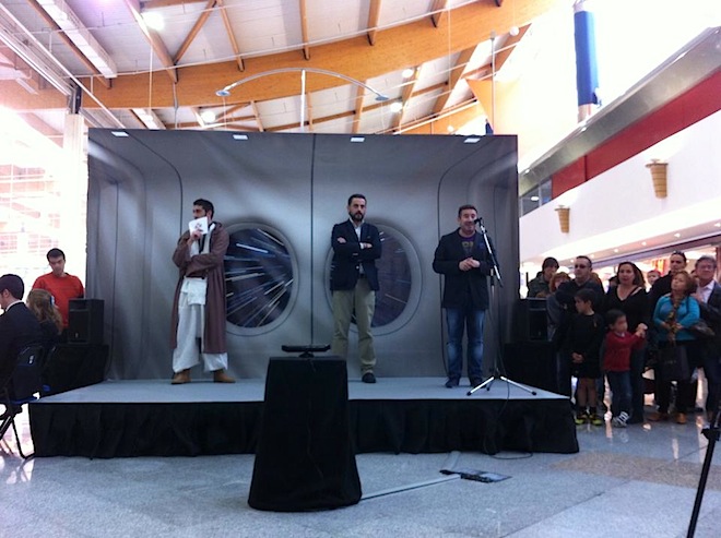 Otra de las sorpresas de este evento ha sido la app de espadas láser, un juego simula el interior de una nave espacial, en la que el jugador dispondrá de una espada láser con la que tiene que destruir unas esferas, al tiempo que evita pisar las baldosas iluminadas, y que se muestra en la ‘Megascreen’.