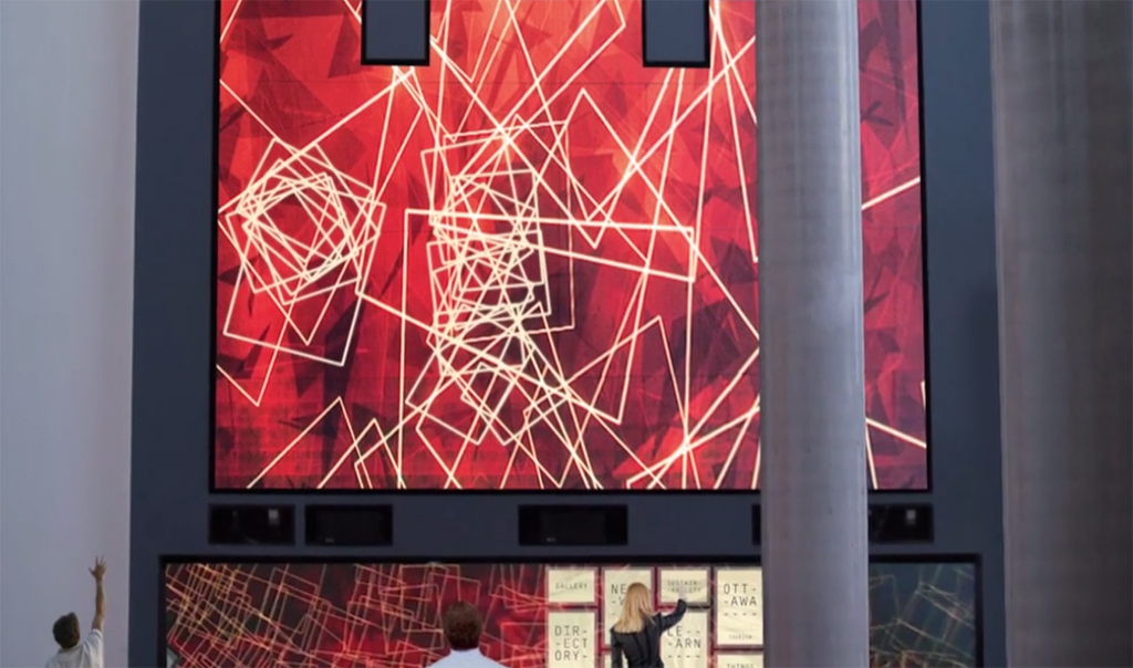 Un grand mur vidéo accueille les visiteurs au Performance Court d'Ottawa