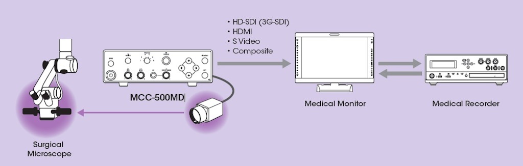 Funciona con alimentación de CA, por lo que no se requiere un adaptador adicional externo, lo que hace que resulte más sencilla su instalación y más adecuada para entornos médicos limpios. MCC-500MD también se puede sincronizar en un sistema de cámara dual para utilizarla en la captación de vídeo en 3D a un precio muy interesante en comparación con otras soluciones de cámaras 3D disponibles actualmente en el mercado.