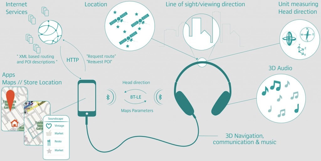 Audiologías de las ciudades, GPS guiados por sonidos orientados a invidentes, entornos virtuales de sonido geolocalizado, jeux, aprendizaje de música, idiomas o historia…, son solo algunas de las posibilidades que ofrecen los Intelligent Headset. El mayor potencial de esta nueva tecnología de sonido radica en su capacidad de identificar los movimientos de la cabeza de quien los usa y establecer con exactitud la dirección en la cual está mirando el usuario en todo momento.