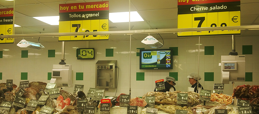 Hiperdino a encore une fois fait confiance Dj3 Îles Canaries pour le développement et la mise en œuvre du circuit de télévision d'entreprise et de publicité dynamique dans l'un de ses centres phares à Isla Palmera. Le circuit intègre un système de gestion de file d'attente intégré, qui informe, à travers les écrans répartis dans tout le centre, sur l'ordre des rotations de service dans les rayons épicerie fine, boucher et poissonnier, rendre l'expérience d'achat du client plus productive et plus satisfaisante.
