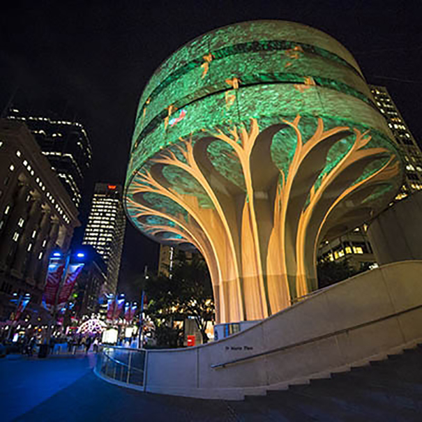 Urban Tree Project est la troisième initiative innovante lancée à Martin Place, un spectacle revigorant émergeant de la terre pour devenir un magnifique arbre de vie dans l'environnement urbain environnant pour célébrer et réfléchir sur le paysage vert original de Sydney. Une conception et une animation issues de l'entreprise, De nombreux projets, tandis que TDC a fourni la solution de projection.