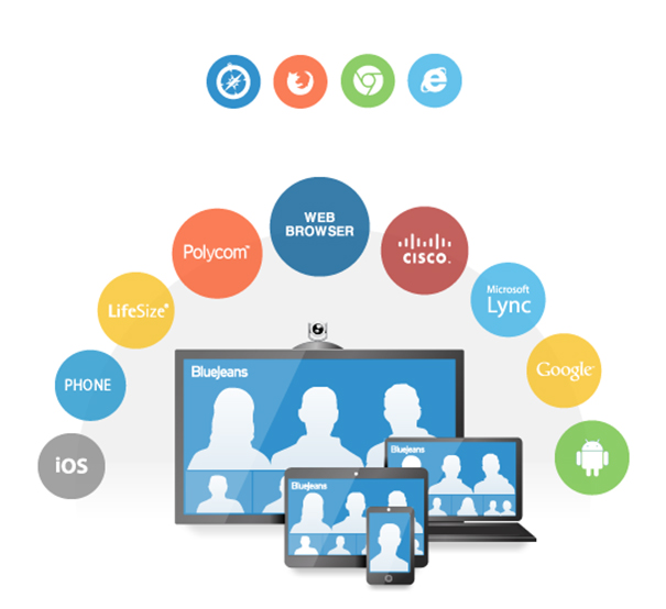 Blue Jeans Network , que empezó como una start-up en Silicon Valley (Californie), cuenta con un servicio que se basa en una plataforma transversal cloud que habilita el establecimiento de comunicaciones de videoconferencia multipunto entre diferentes plataformas existentes en el mercado, enlazando, Par exemple, sistemas de videconferencia hardware con endpoints basados en software que antes no eran compatibles entre sí.