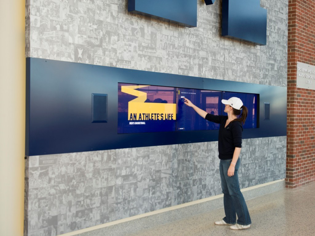 Le système de mur vidéo LCD Planar Clarity Matrix choisi pour être placé dans le Hall d'honneur de Crisler, une "bibliothèque"’ écran tactile numérique affichant l'histoire sportive du Michigan. Cet écran est configuré avec un équipement MX46HD dans un format 5×3 vous permettant de parcourir un large éventail de contenus, y compris les profils de joueurs, titres et récompenses obtenus, et un ensemble d'images et de vidéos historiques.