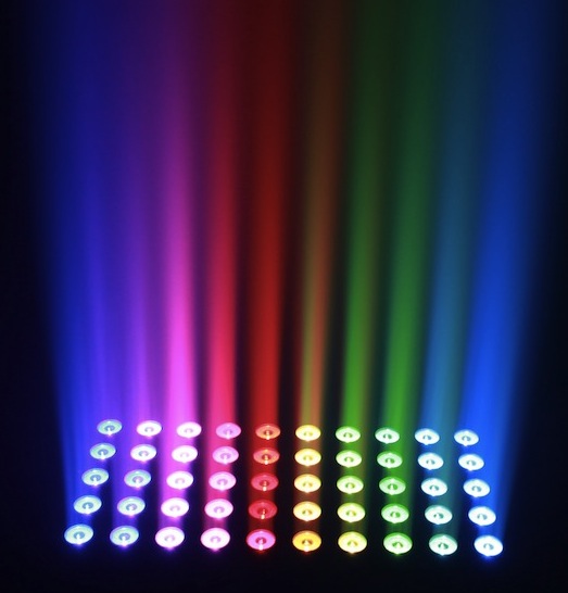 MagicBlade R es una luminaria LED automatizada (15W RGBW) escroquer 4,5 grados emisores de haces controlables individualmente en una configuración lineal, para crear mezclas de colores suaves en franjas muy controladas de luz, así como una cortina única de luz de alta intensidad, con un flujo de 11.500 lúmenes y un consumo total de 450 watts.
